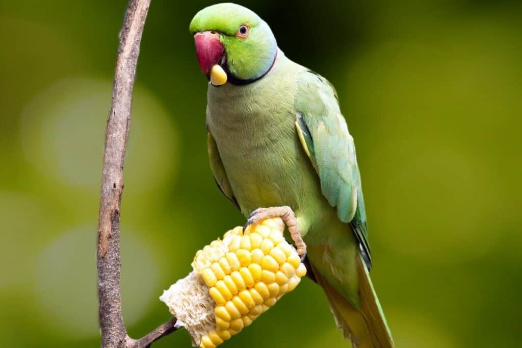 Figure 6 Perruches à collier mangeant un piment