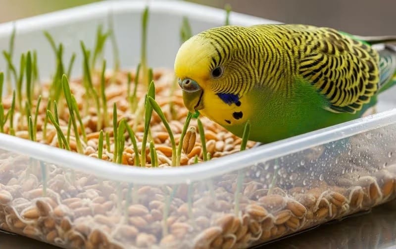 Lorsque la graine est mise à tremper puis commence à germer, un processus biologique se déclenche. Des enzymes s’activent et transforment les réserves de la graine. Les amidons sont partiellement convertis en sucres plus simples, les protéines deviennent plus digestes et certains anti-nutriments diminuent. Grâce à cette transformation, la graine germée devient plus facile à digérer pour l’oiseau.